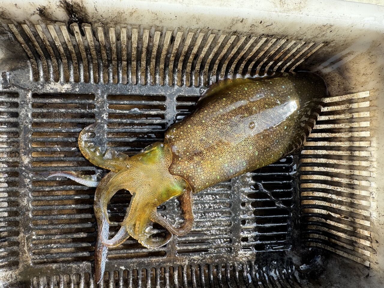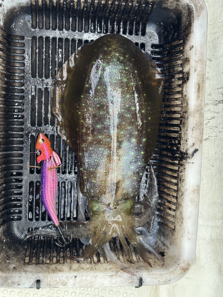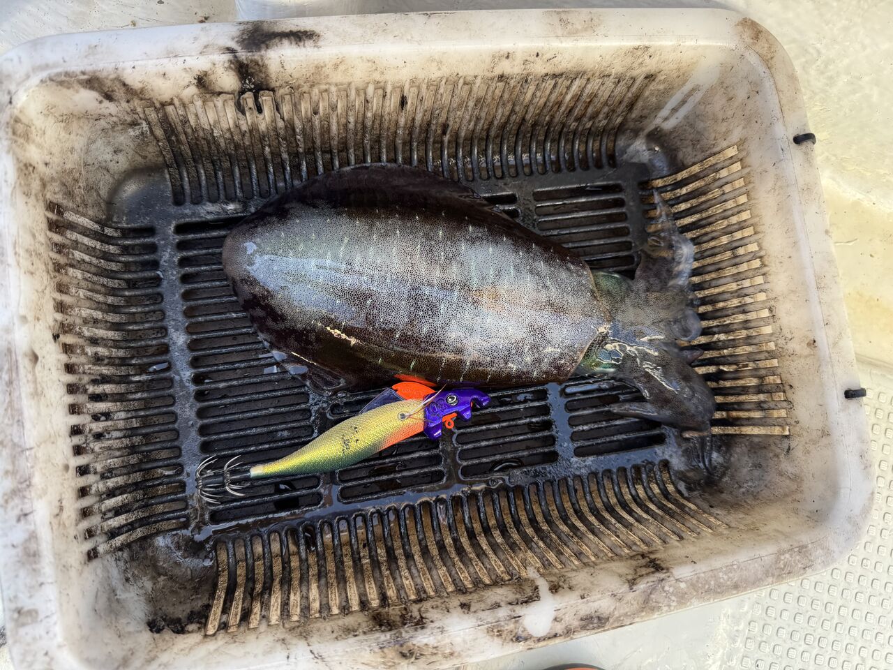 早々に4杯、キロアップとはいきませんが、500-800g程度のイカが釣れました。