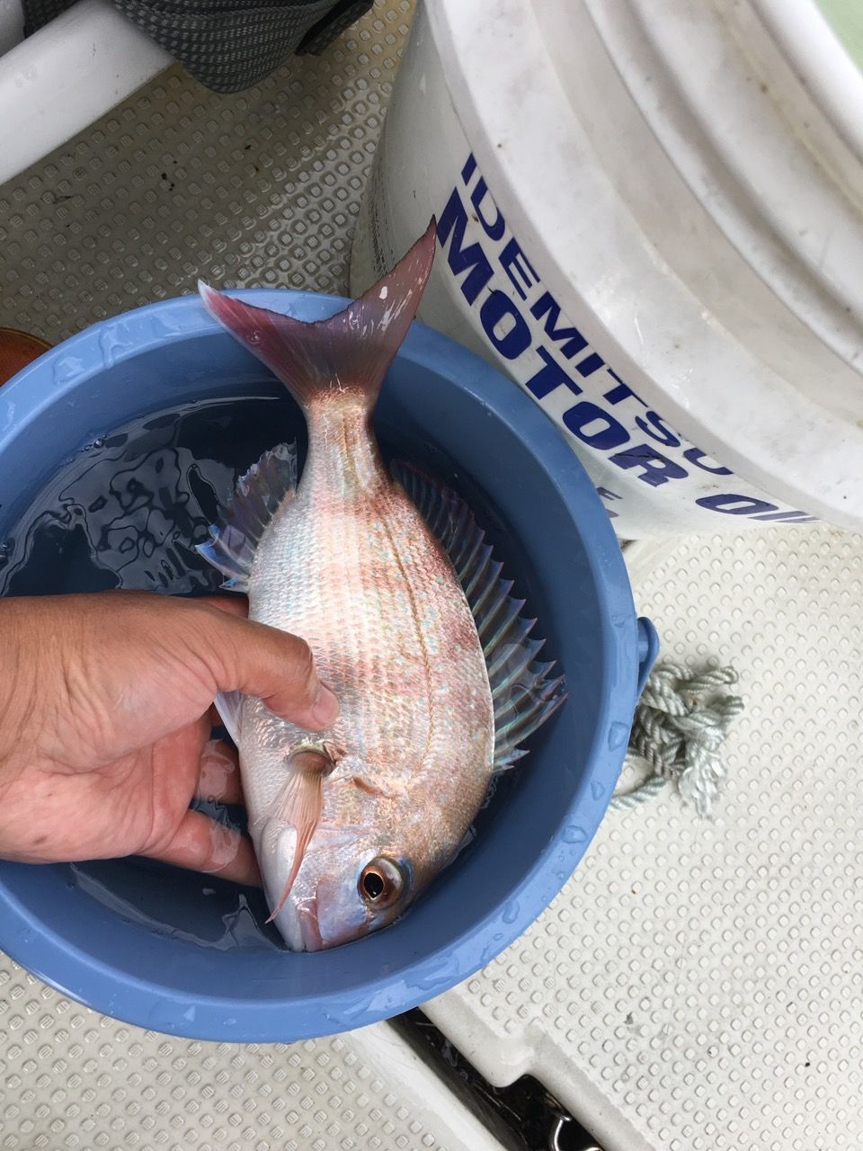 最初はジグでぽつぽつ 釣れたんで、テンヤで大物を・・・