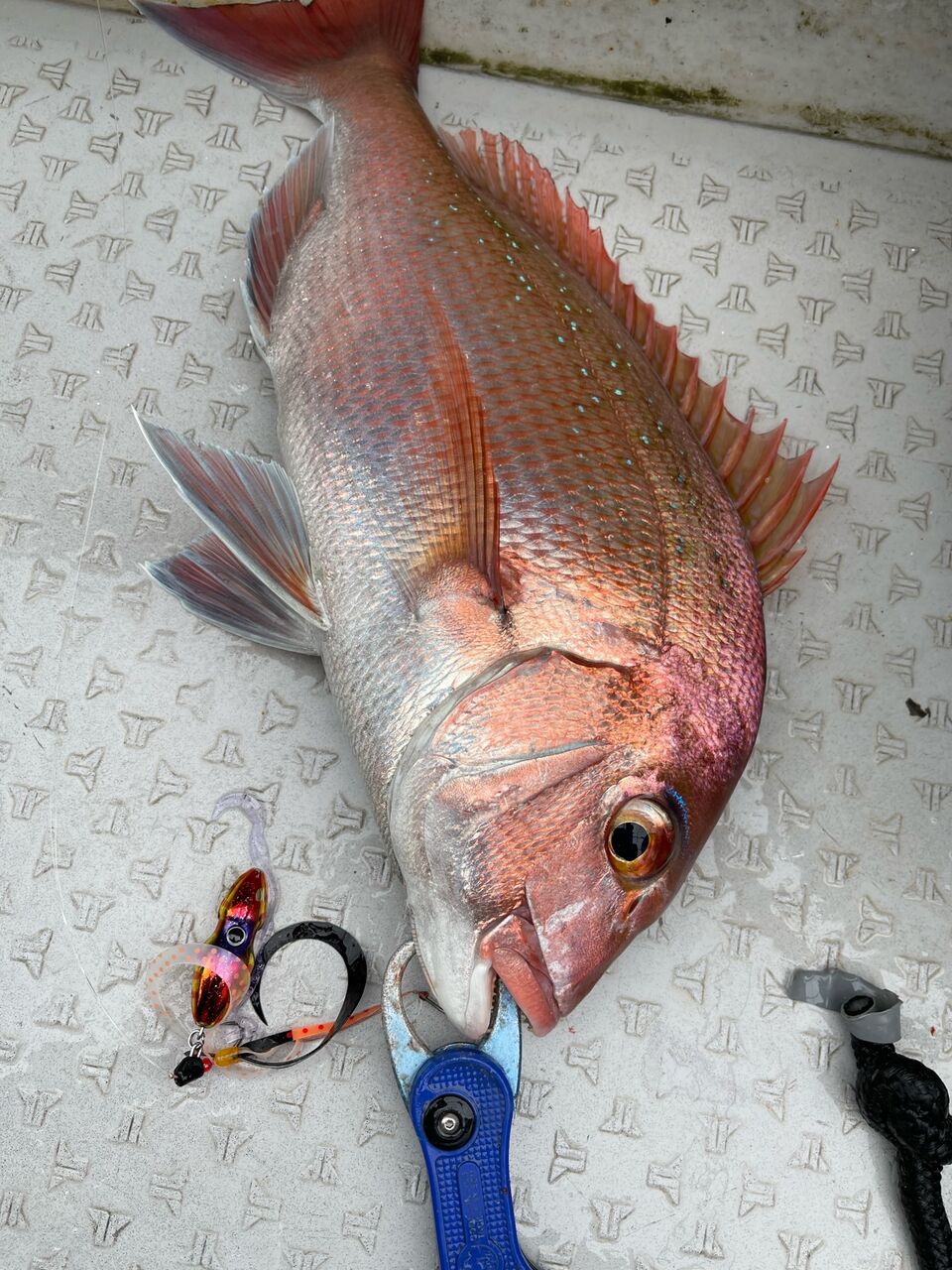 目の前まできた鯛をタモ入れでバラしてしまうという失態もあり、大苦戦。