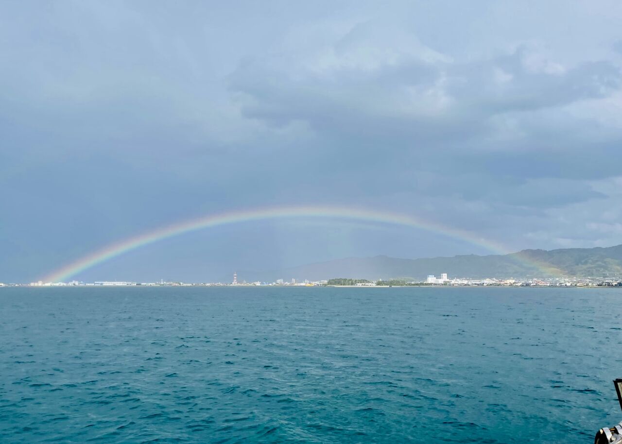 端から端まで見える虹はなかなか無いと思います。