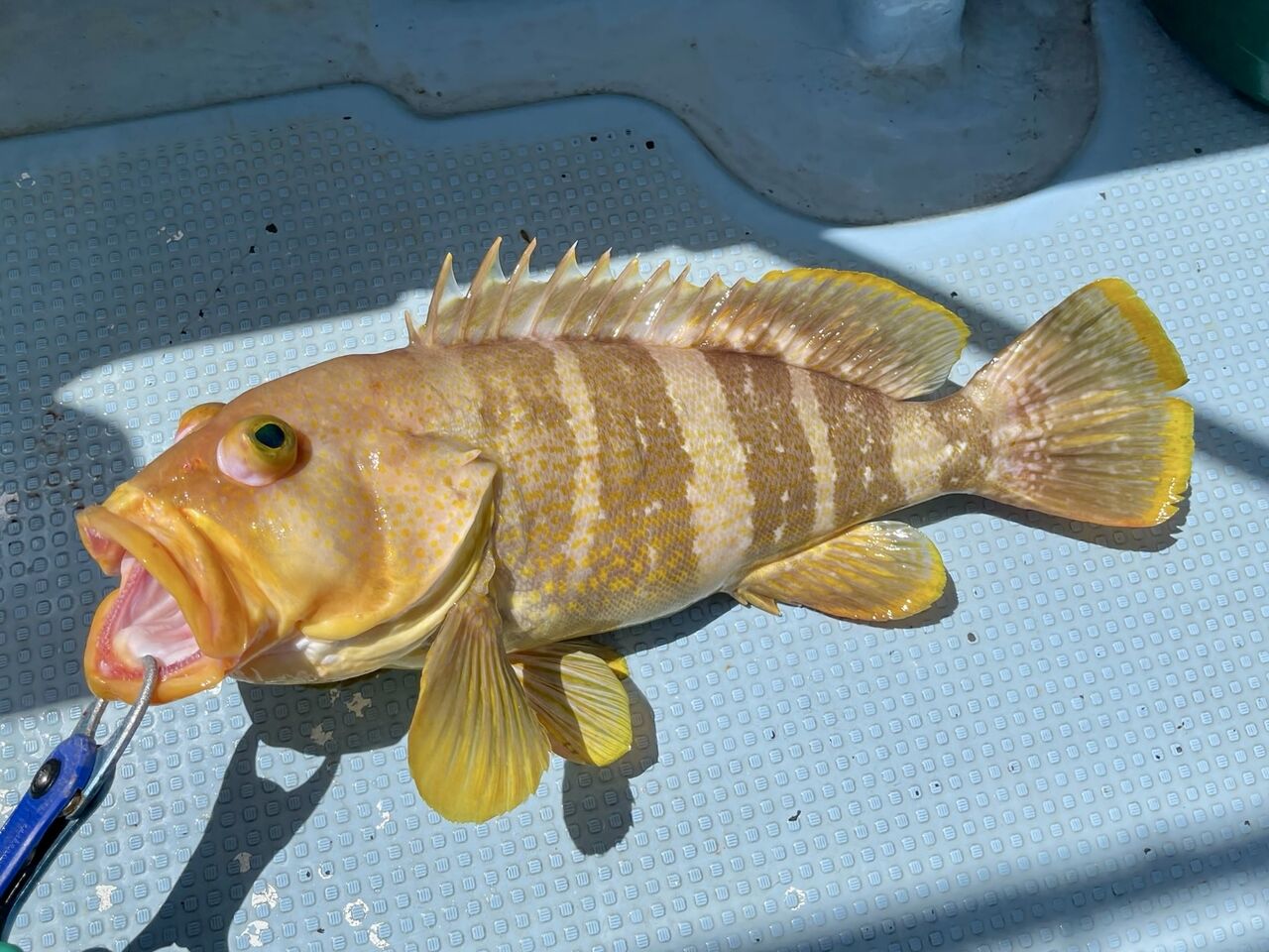 アオハタは群れているので、一人が釣れるとパタパタと釣れます。